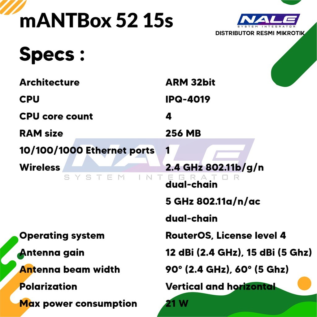 Membuat koneksi point-to-multipoint yang efisien, rumit? Sekarang tidak lagi: mANTBox 52 15s bekerja dengan baik dalam pengaturan apapun. Kemampuan wireless dual-band memungkinkan Anda menggunakan perangkat 2,4 GHz dan 5 GHz secara bersamaan. Ada port Gigabit Ethernet dan port SFP untuk koneksi fiber.