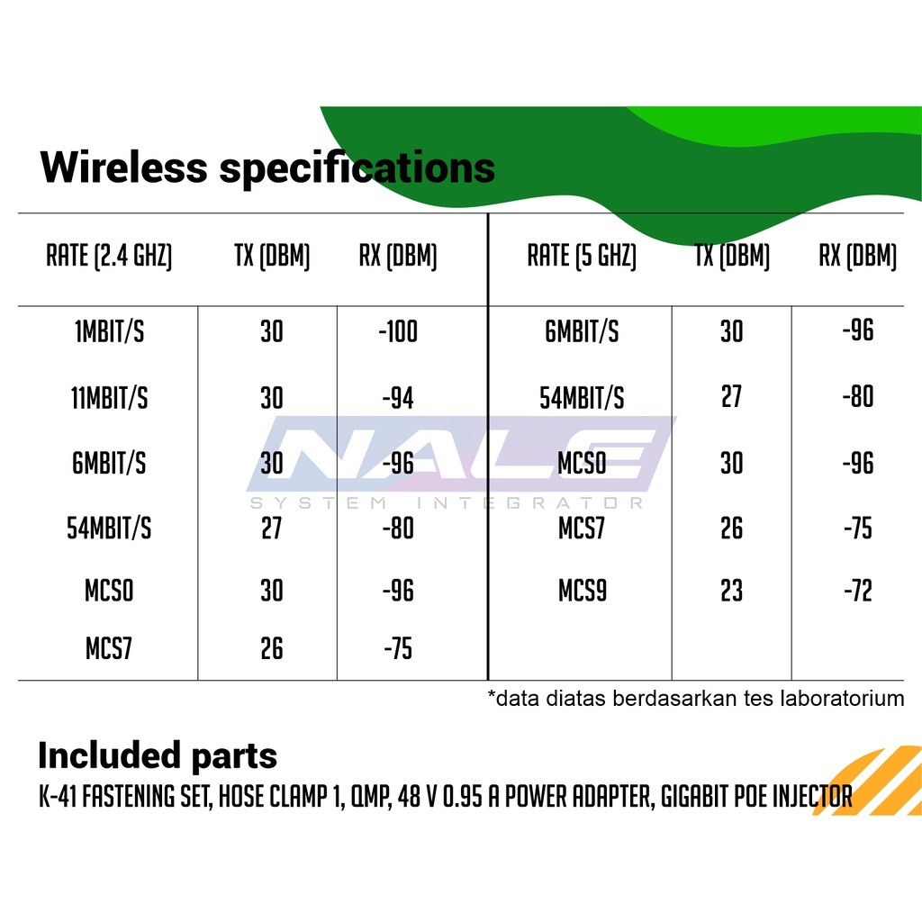 *sudah termasuk 48 V 0.95 A power adapter, K-41 fastening set, PoE injector, Hose clamp, quickMOUNT pro
